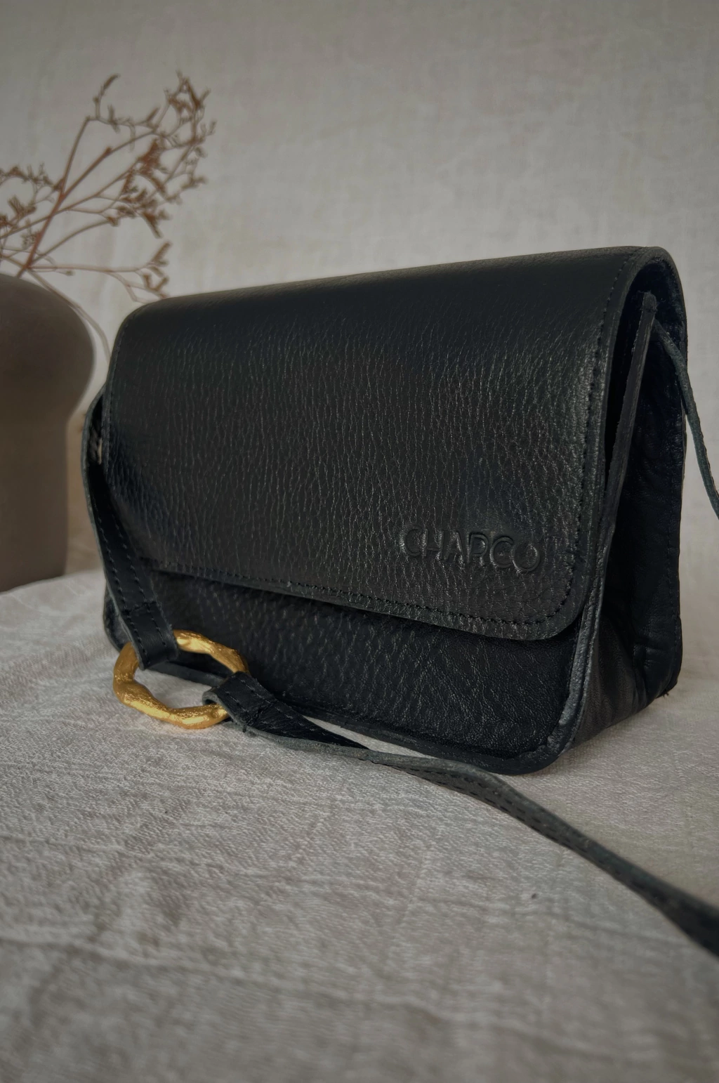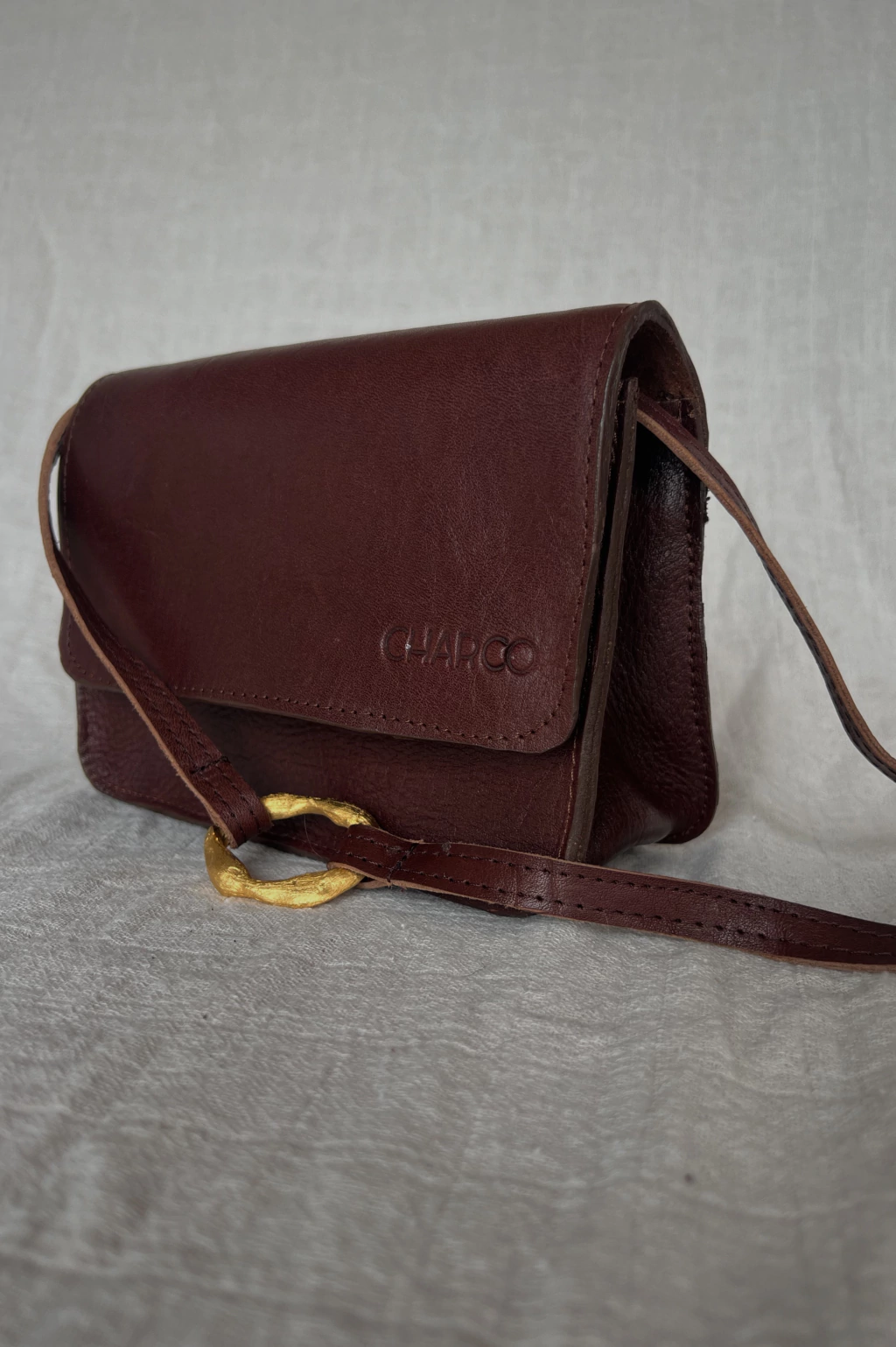 Bandolera de cuero vacuno curtido vegetal. Posee una tira regulable, interior en lienzo con un pequeño bolsillo. La solapa se vincula por dos botones imán.